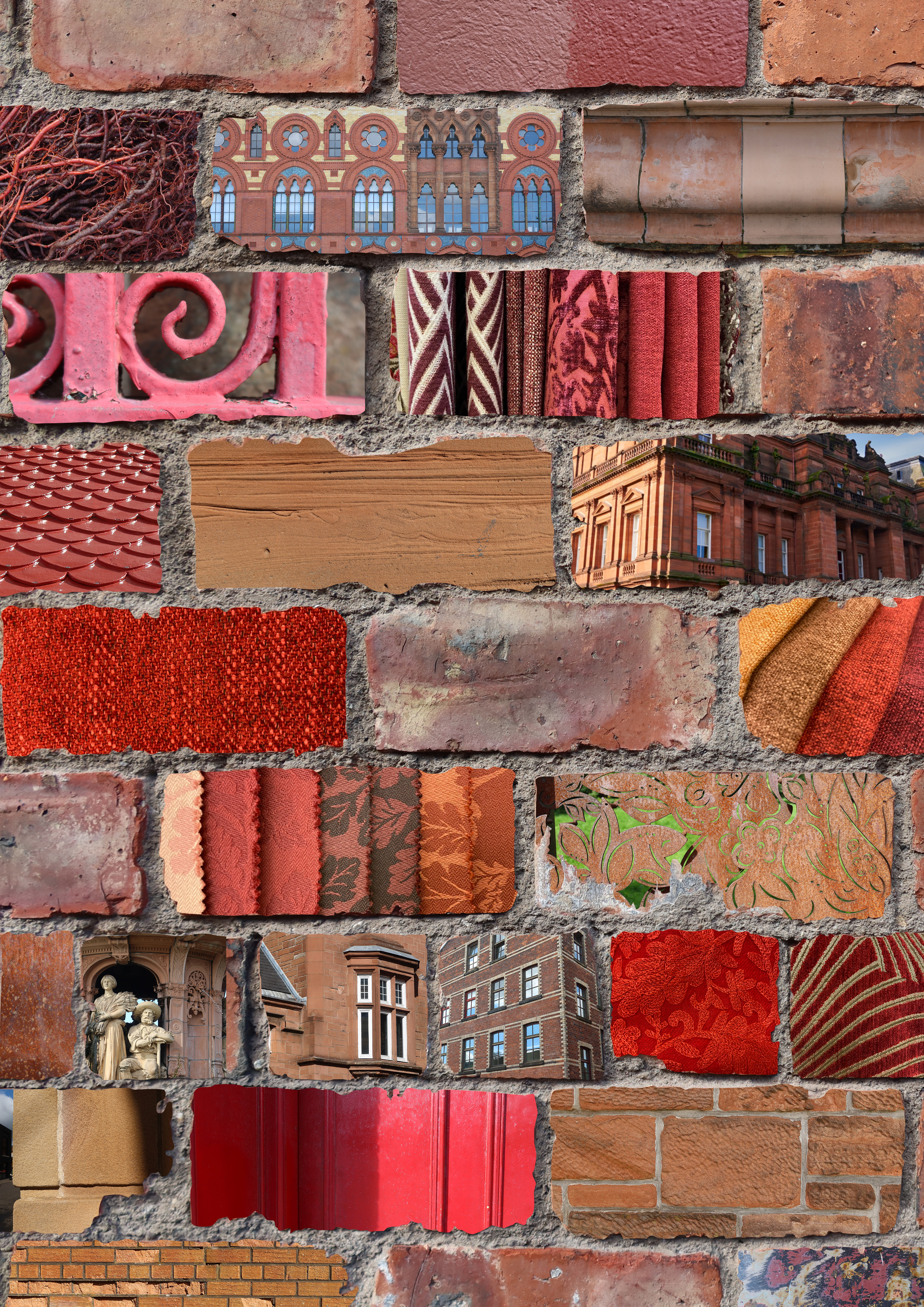 - Using the red hues based on snapshots of bricks, building and fabric was quite an exercise in gathering a lot and bringing it together.