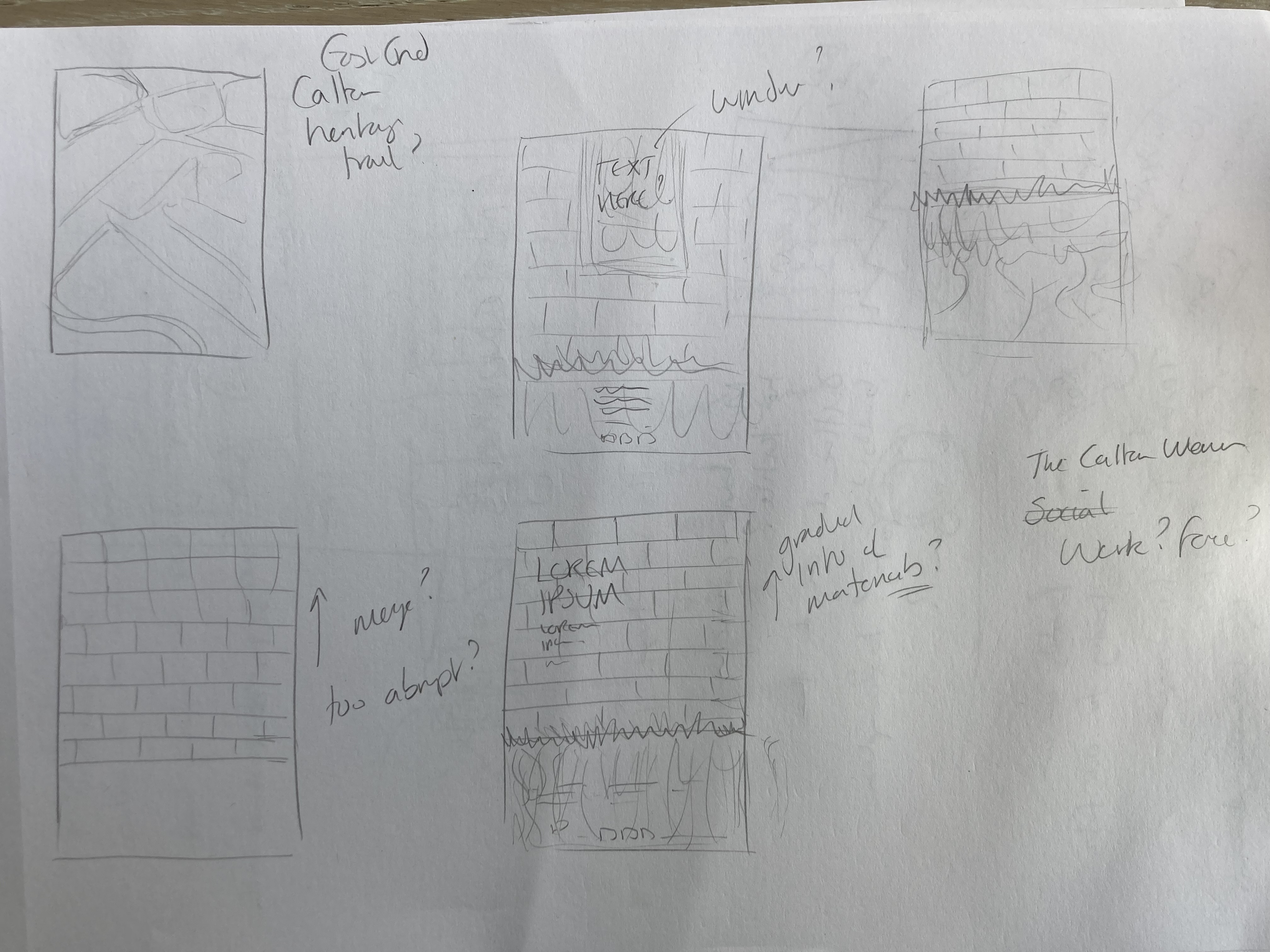 Realising that this is already really busy as an image, I decided to try a simple outline of a classic textile building as per the thumbnail trials and play around with how to do that in InDesign. Fading out entirely wasn’t great so I tried an outline and feathered it to get a kind of grafitti effect on the ‘wall’.