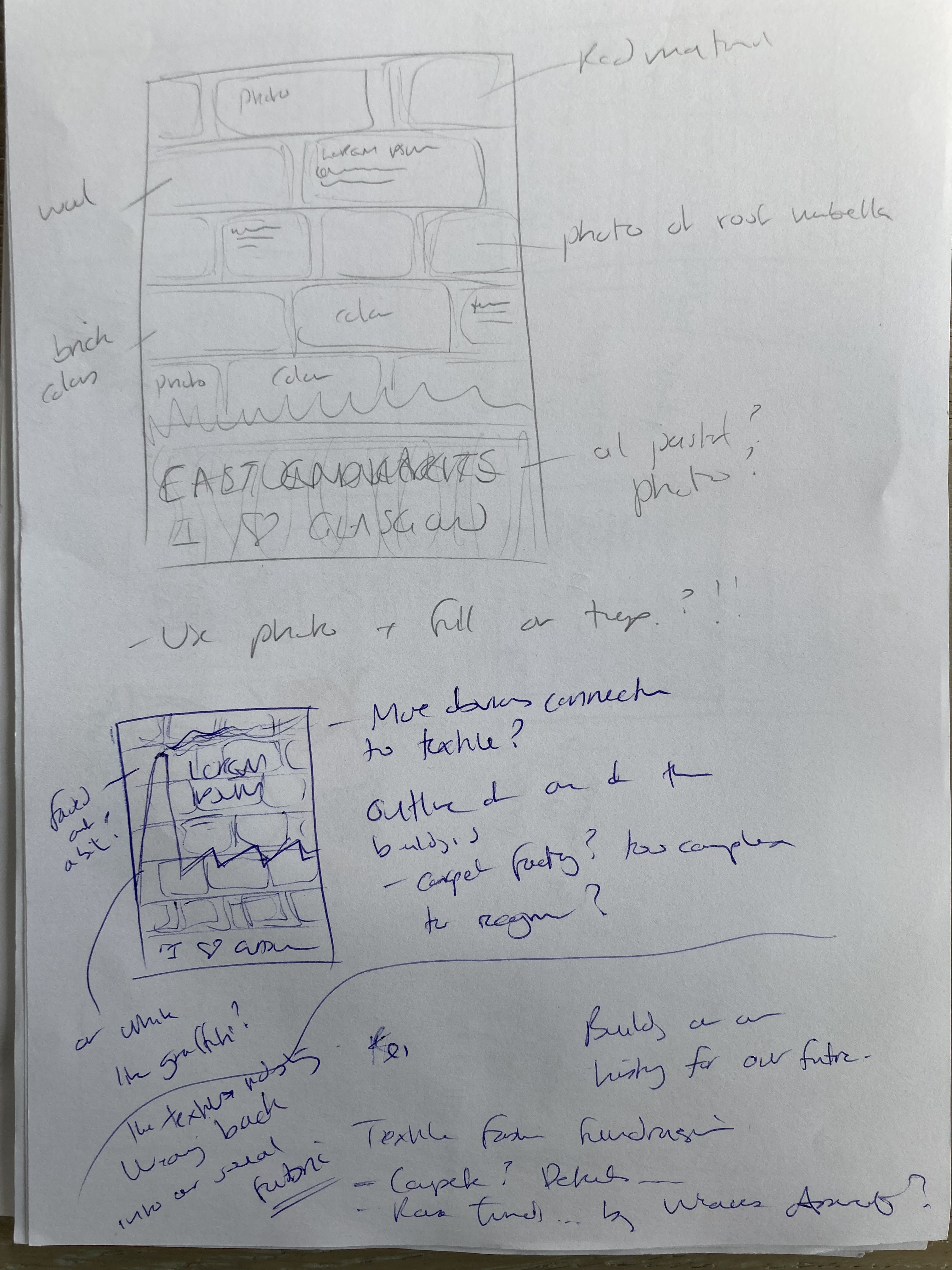 From the ideas and brainstorming I tried some thumbnails to think about how to bring the elements together and how to focus the topic of the design. A heritage walk? An exhibition? A touristic explore the East End poster?